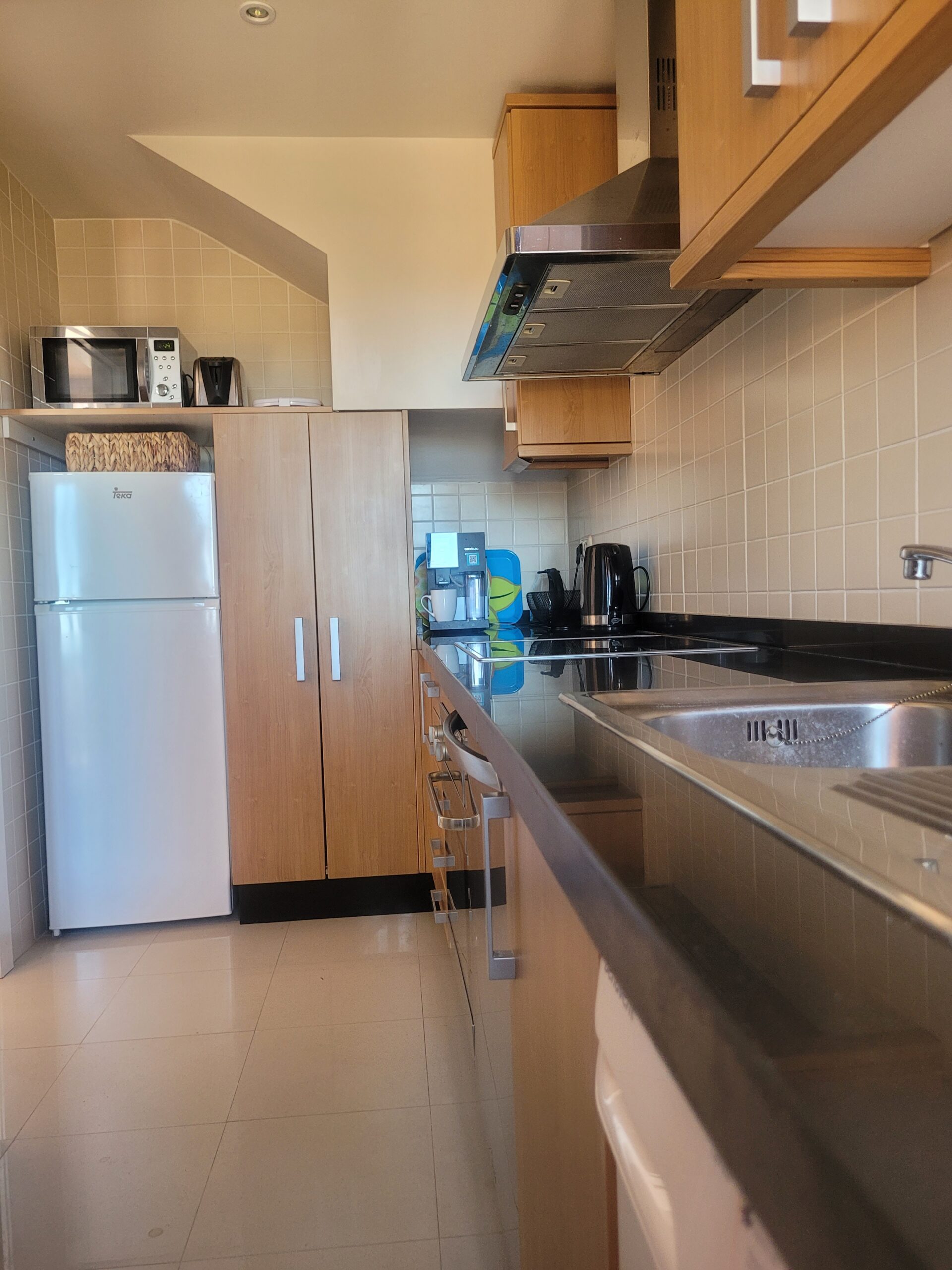 Kuchyně je vybavena lednicí, troubou, mikrovlnkou, toasterem, kávovarem, myčkou, pračkou i kompletní sadou nádobí.